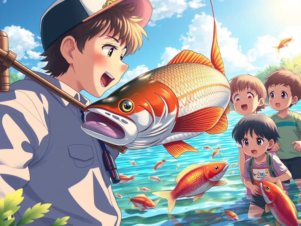„Zobaczcie, jaką dużą rybę złowiłem!” – zawołał Jacek, trzymając wędkę wysoko. Na końcu żyłki błyszczał złocisty karp.